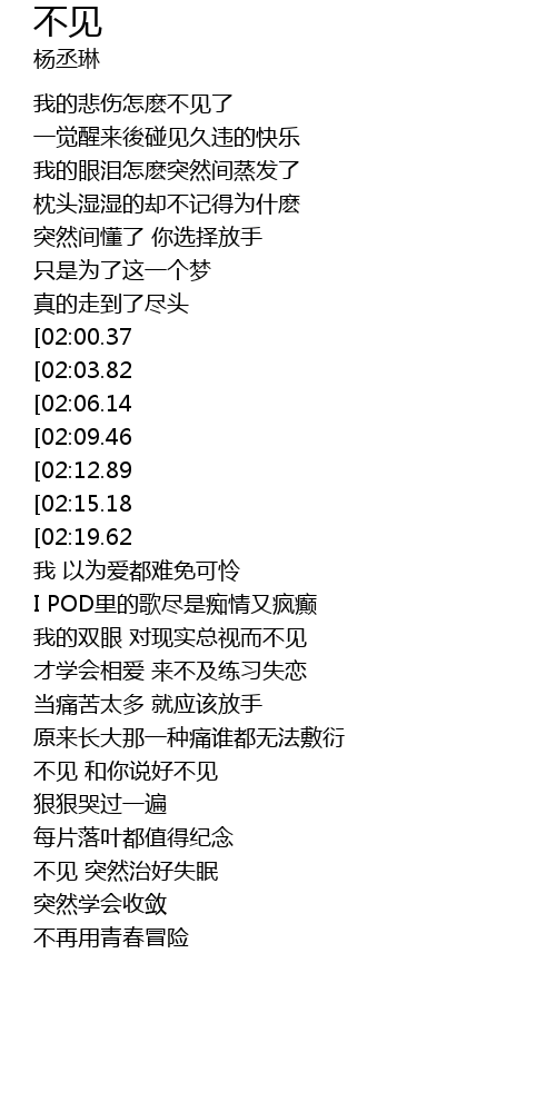 | [00:39.29] | wǒ de bēi shāng zěn mó bú jiàn le |