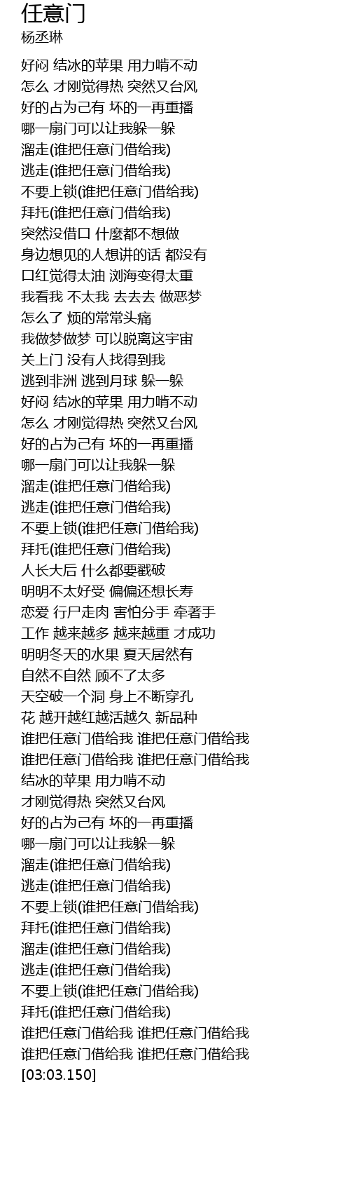 | [02:42.470] | 不要上锁(谁把任意门借给我) |