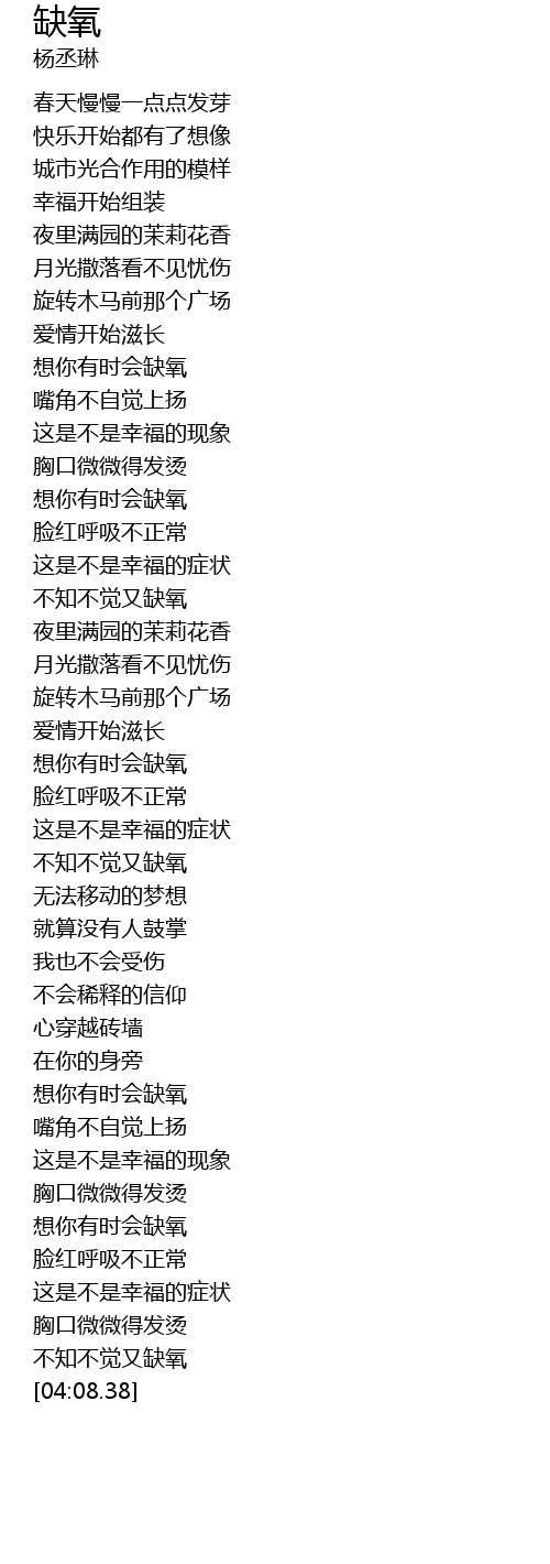 | [03:38.11] | 想你有时会缺氧 |
