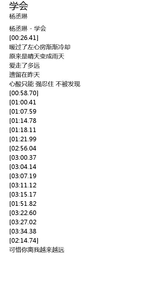 | [00:01.25] | 杨丞琳 - 学会 |