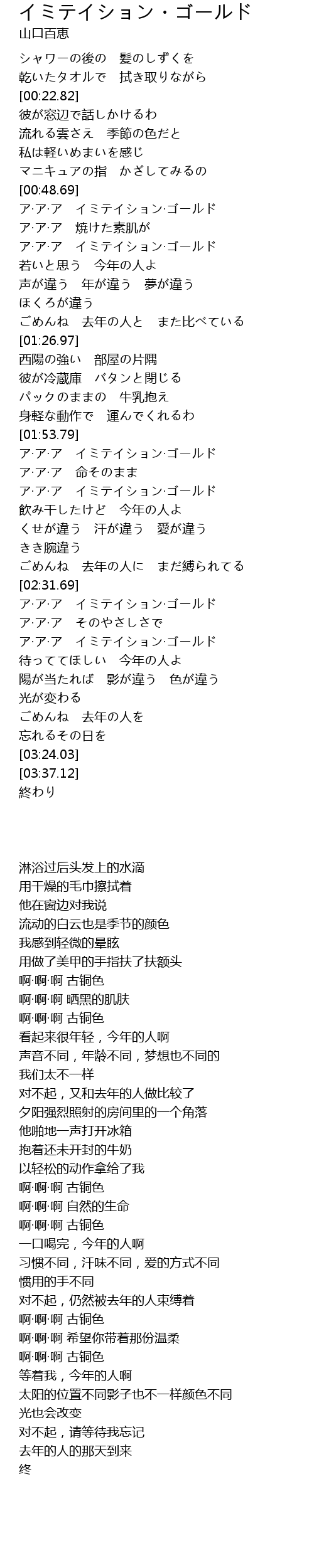 | [01:55.43] | ア·ア·ア イミテイション·ゴールド |