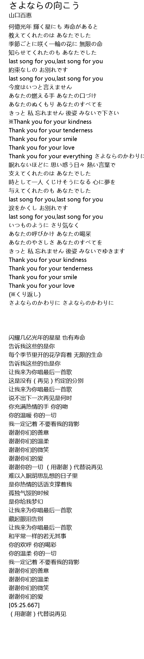 | [02:22.489] | Thank you for your everything さよならのかわりに※ |