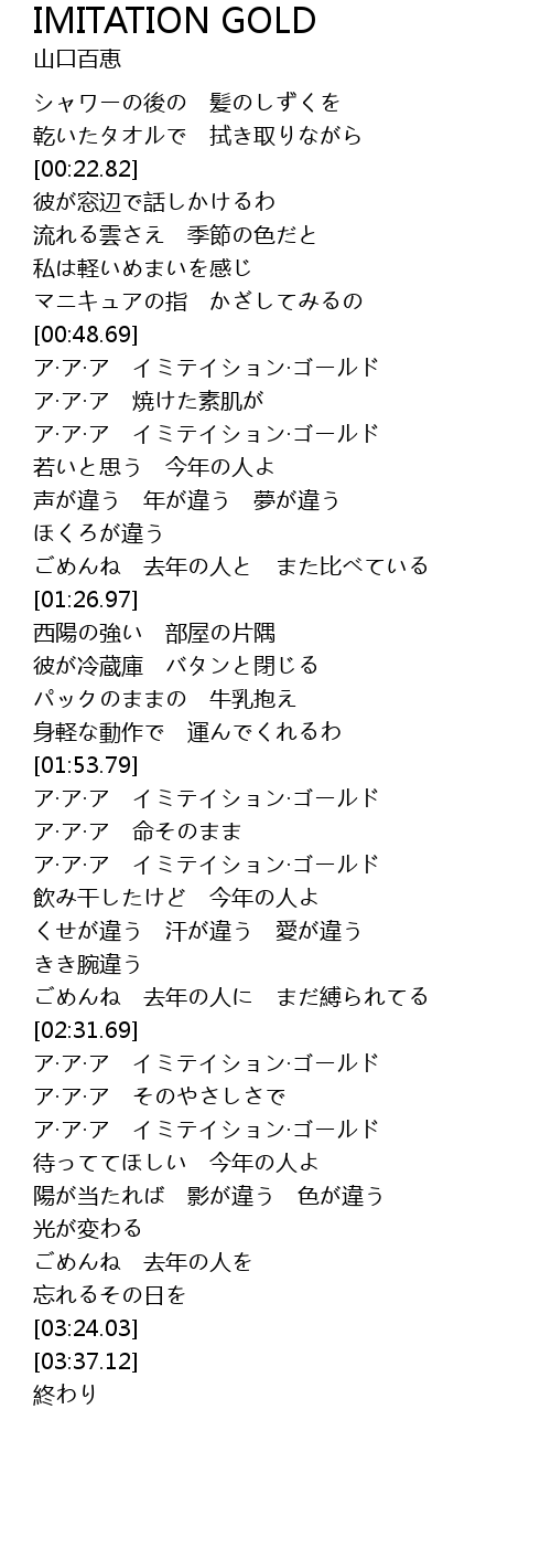 | [01:55.43] | ア·ア·ア イミテイション·ゴールド |