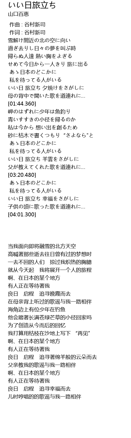 | [03:39.730] | いい日 旅立ち 幸福をさがしに |