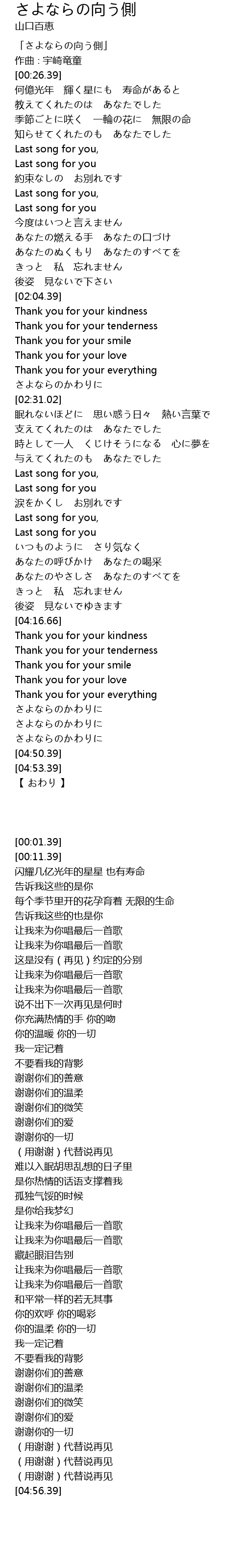 | [04:33.97] | Thank you for your everything |