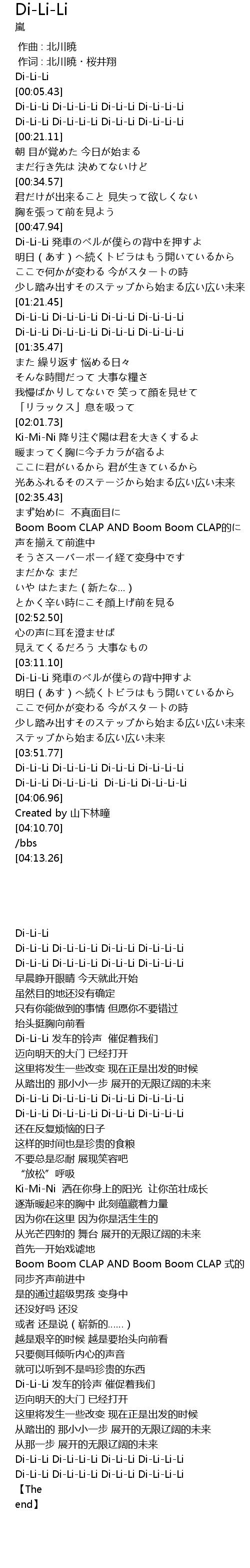 | [03:52.47] | Di-Li-Li Di-Li-Li-Li Di-Li-Li Di-Li-Li-Li |