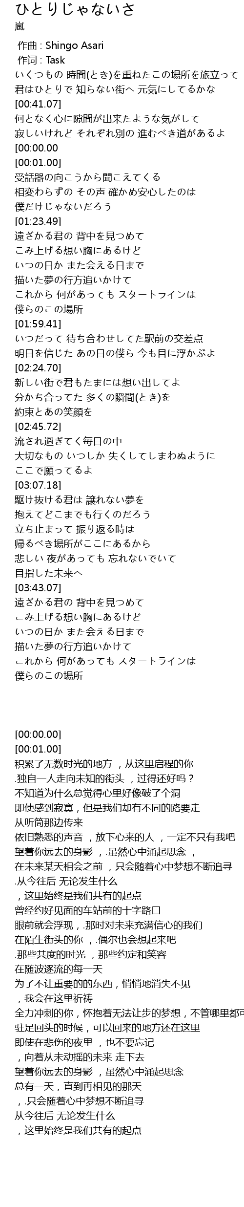 | [01:45.21] | これから 何があっても スタートラインは 僕らのこの場所 |