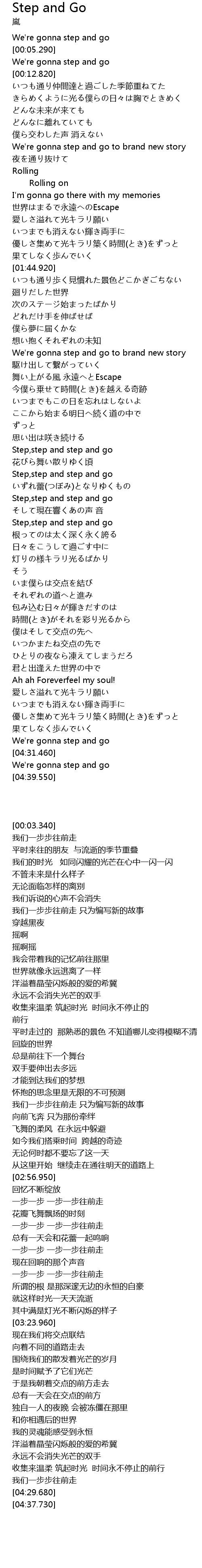 | [03:12.390] | Step,step and step and go |