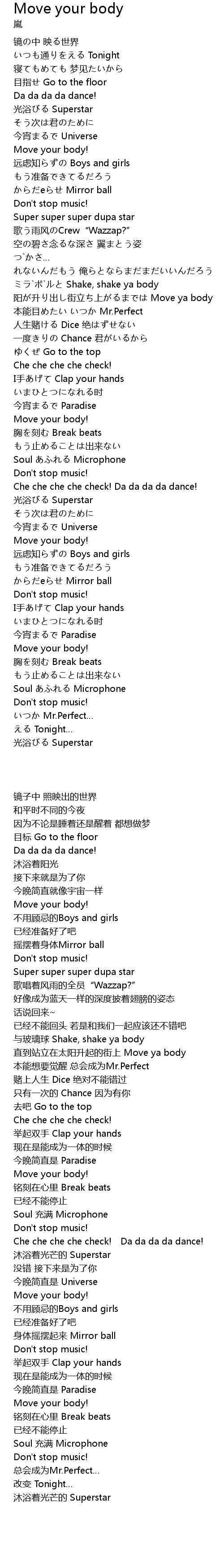 | [01:09.31] | yáng shēng chū jiē lì shàng Move ya body |