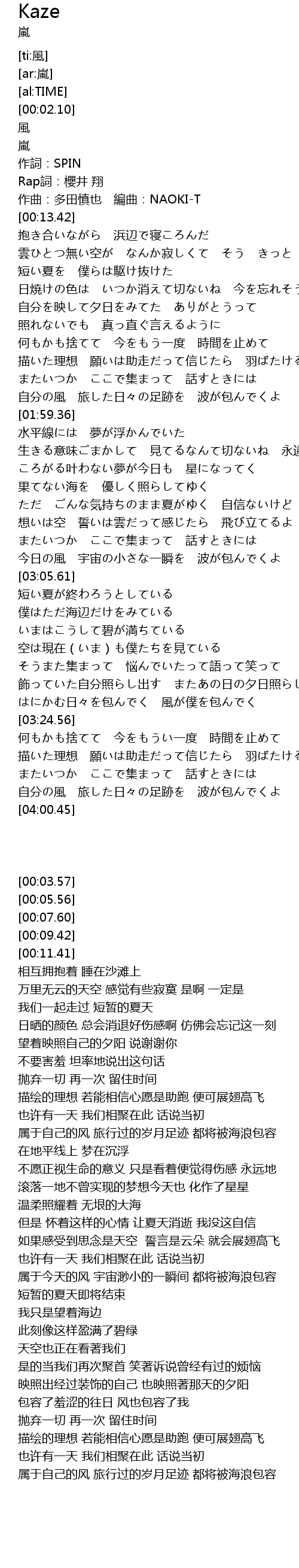 | [00:09.42] | Rap詞:櫻井 翔 |