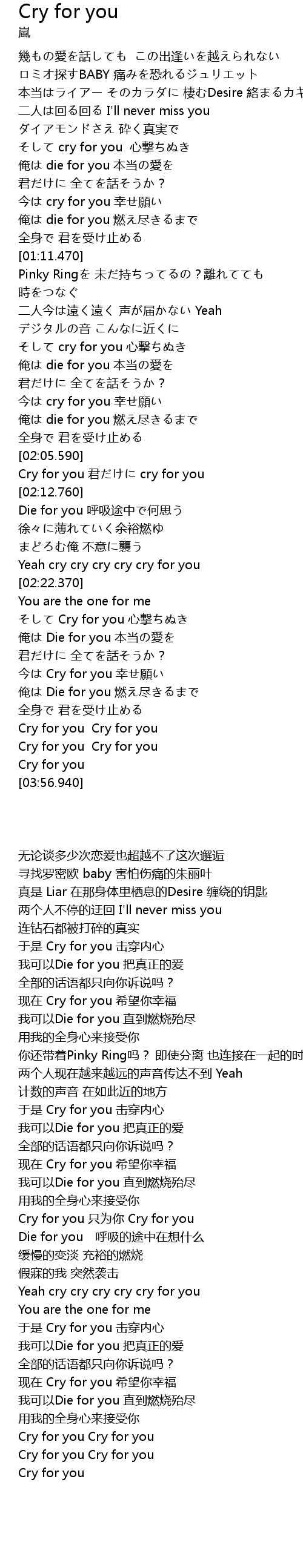 | [02:20.490] | Yeah cry cry cry cry cry for you |