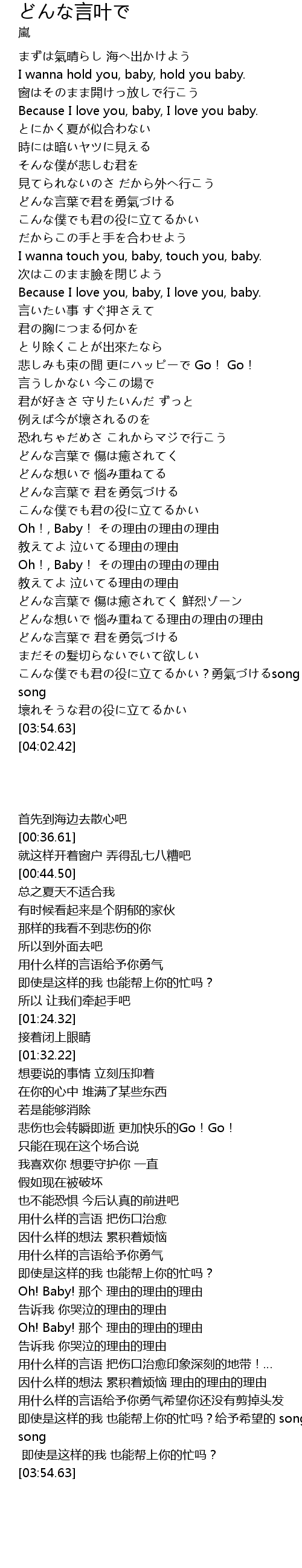 | [03:12.22] | Oh!, Baby! li you li you li you |