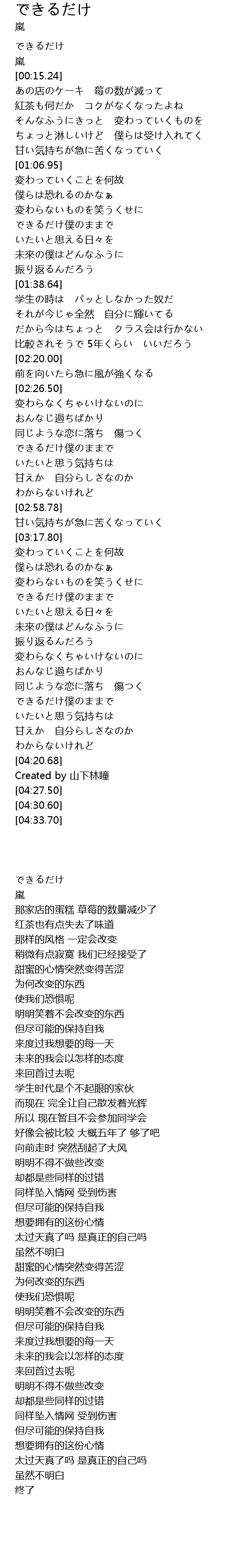 | [02:13.88] | 比較されそうで 5年くらい いいだろう |