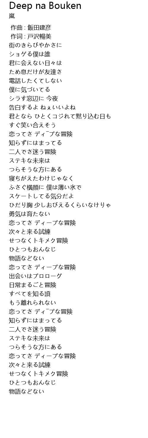 | [02:19.09] | 恋ってさ ディープな冒険 |
