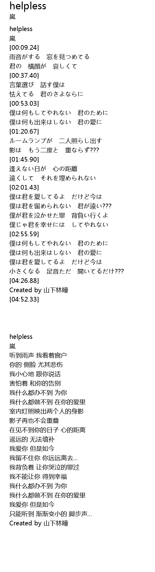 | [00:03.24] | helpless |