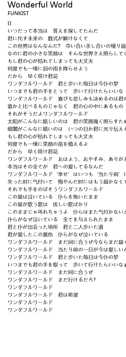 | ワンダフルワールド まだ间に合うぜ今ならまだ届くぜ | |