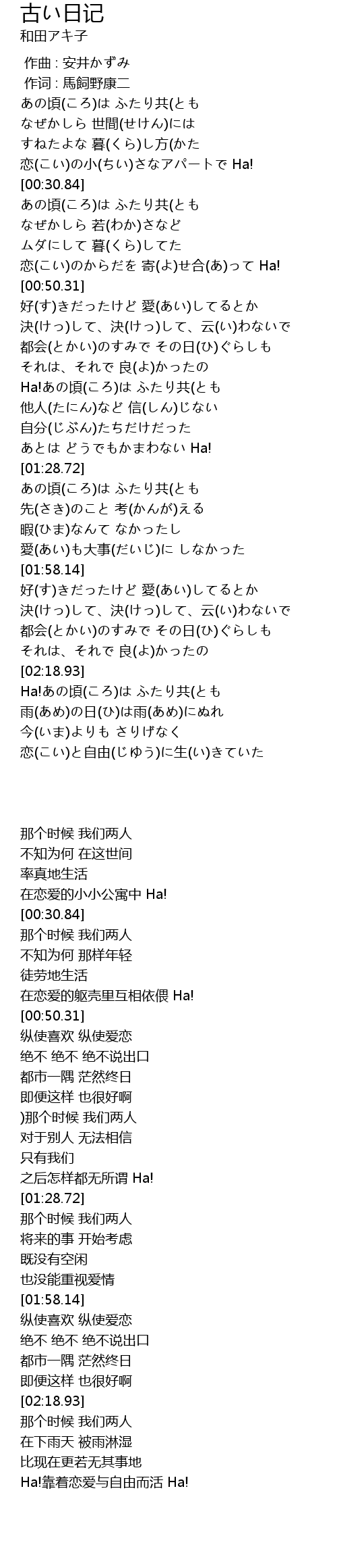 | [02:19.94] | Ha!あの頃(ころ)は ふたり共(とも |