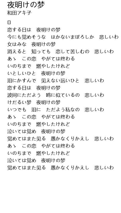 | 觉めてはまた见る 愚かなくりかえし 悲しいわ |