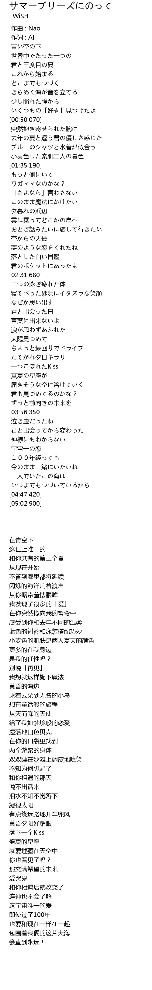 | [02:52.560] | 寝そべった砂浜にイタズラな笑顔 |