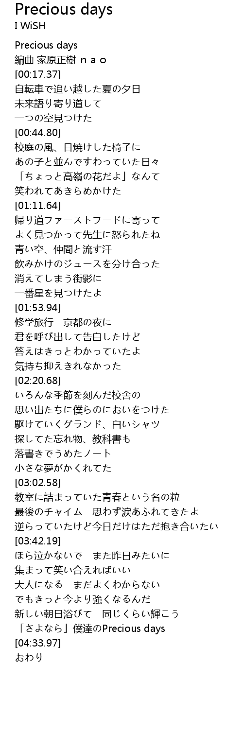 | [00:02.03] | Precious days |