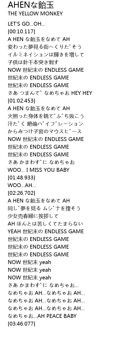 | [03:41.110] | なめちゃお…AH PEACE BABY |
