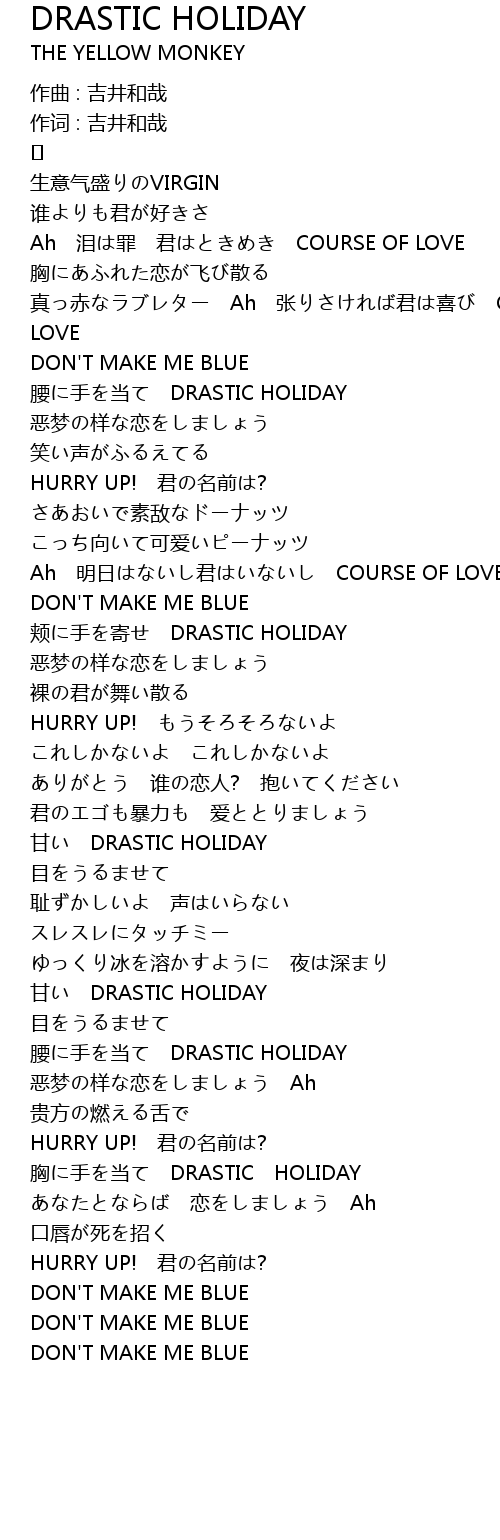 | Song | DRASTIC HOLIDAY |