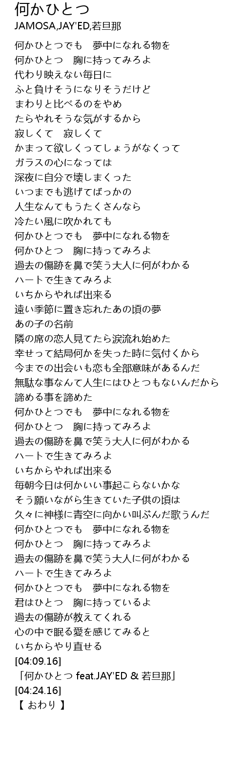 | [04:12.16] | 「何かひとつ feat.JAY'ED & 若旦那」 |