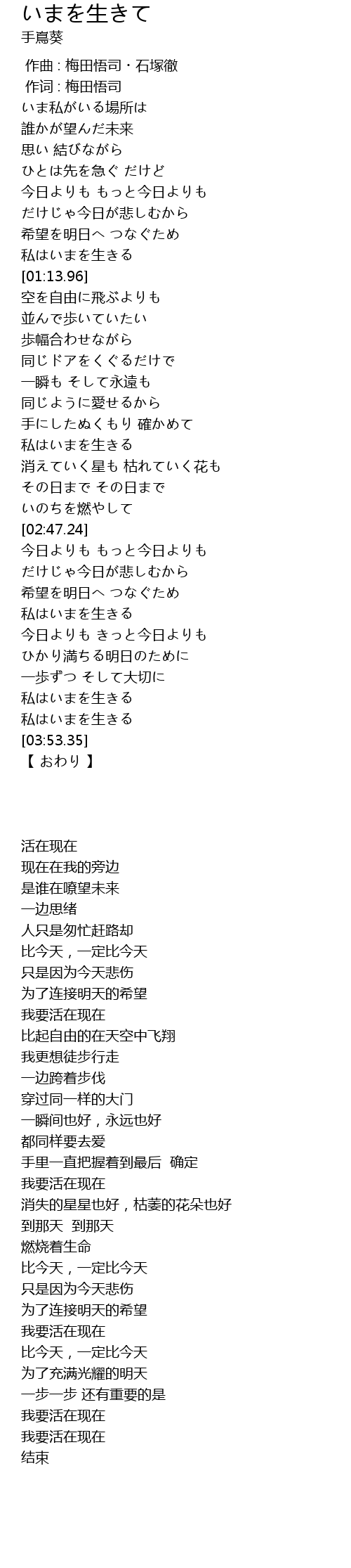 | [03:38.31] | 私はいまを生きる |