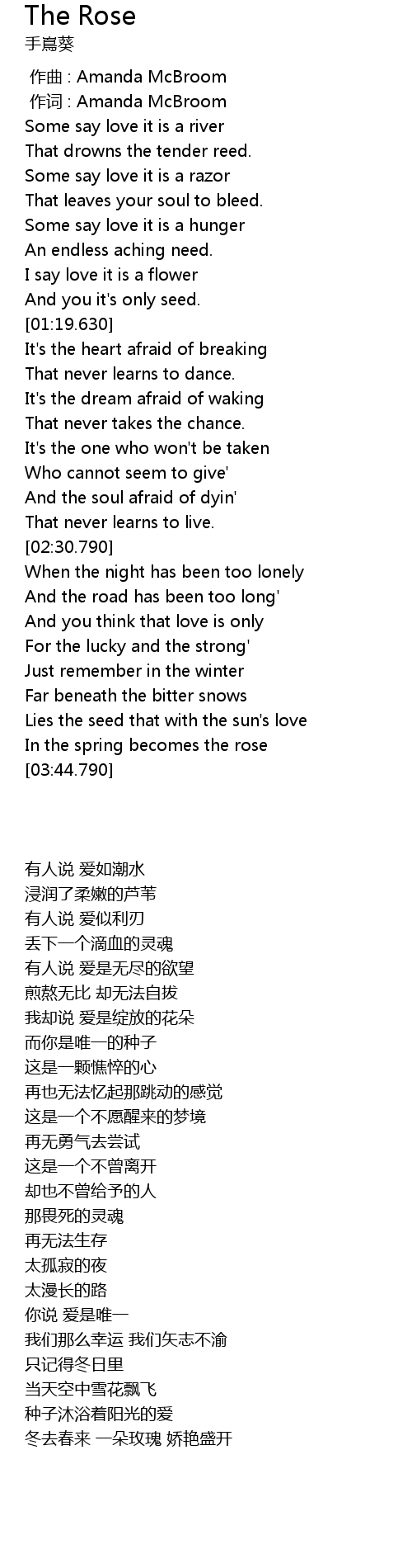 | [00:01.00] | 作词 : Amanda McBroom |