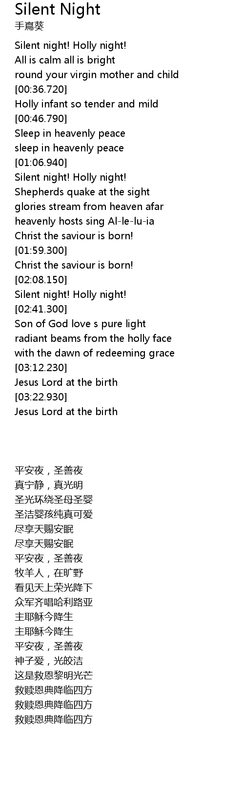 | [02:32.240] | Silent night! Holly night! |