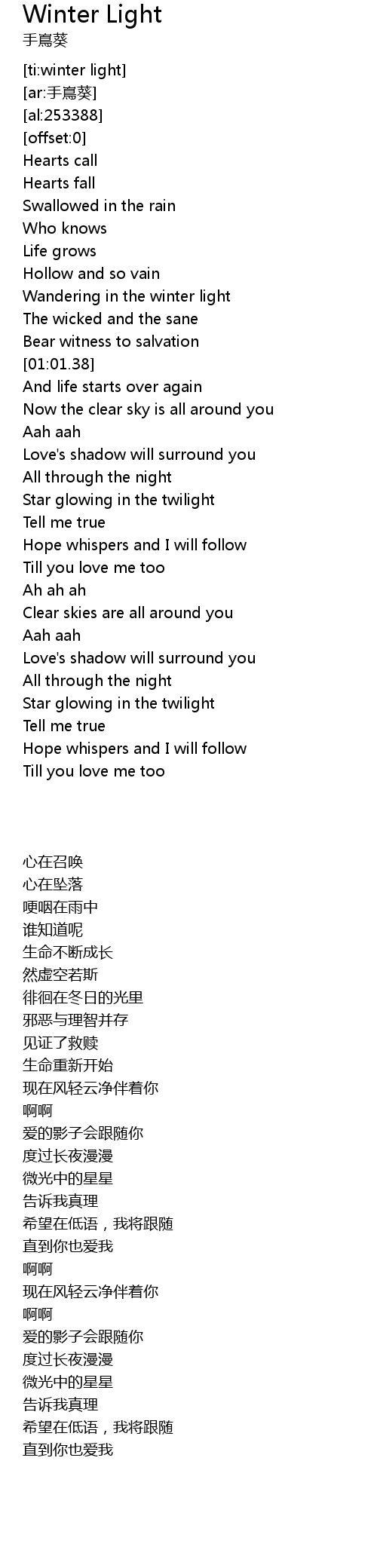 | [00:43.12] | Wandering in the winter light |