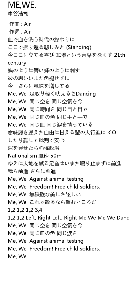 | [02:32.65] | Me, We. 同じ空を 同じ空気を今 |