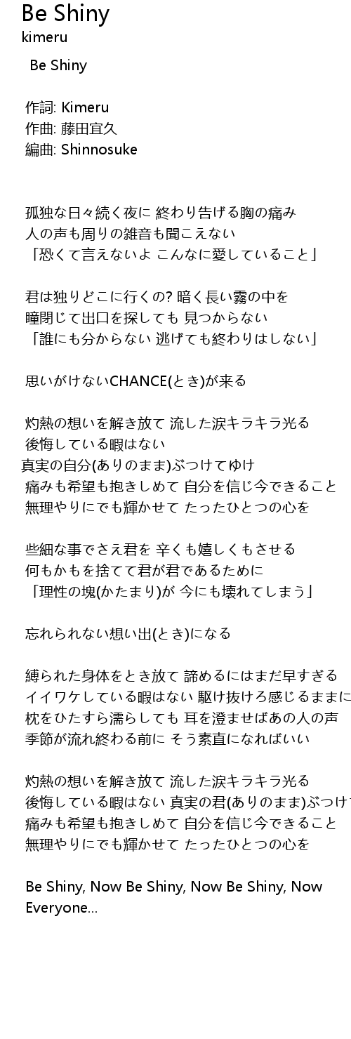 | Be Shiny, Now Be Shiny, Now Be Shiny, Now | |