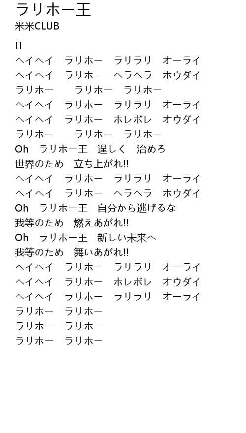 ヘイヘイ ラリホー ホレボレ オウダイ |