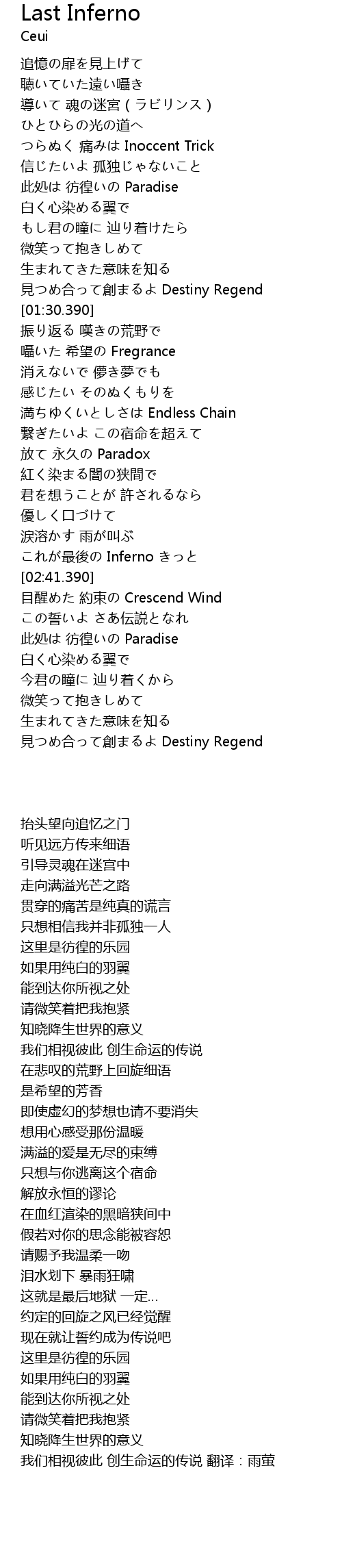 | [03:19.390] | この誓いよ さあ伝説となれ |