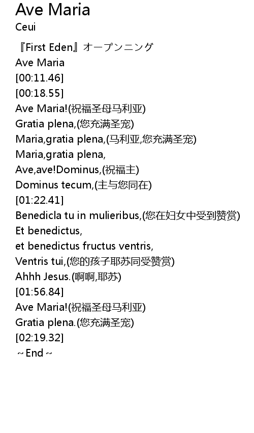 | [02:10.94] | Gratia plena.(您充满圣宠) |
