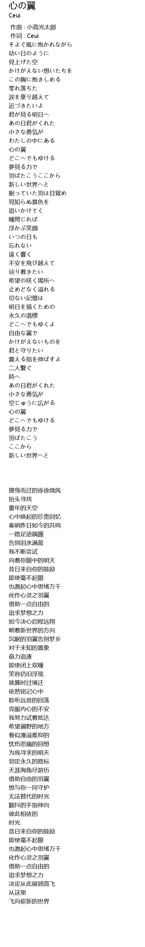 | [01:03.21] | 心の翼 |