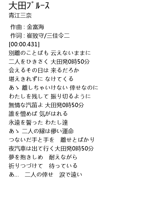 | [00:45.100] | 二人をひきさく 大田発0時50分 |