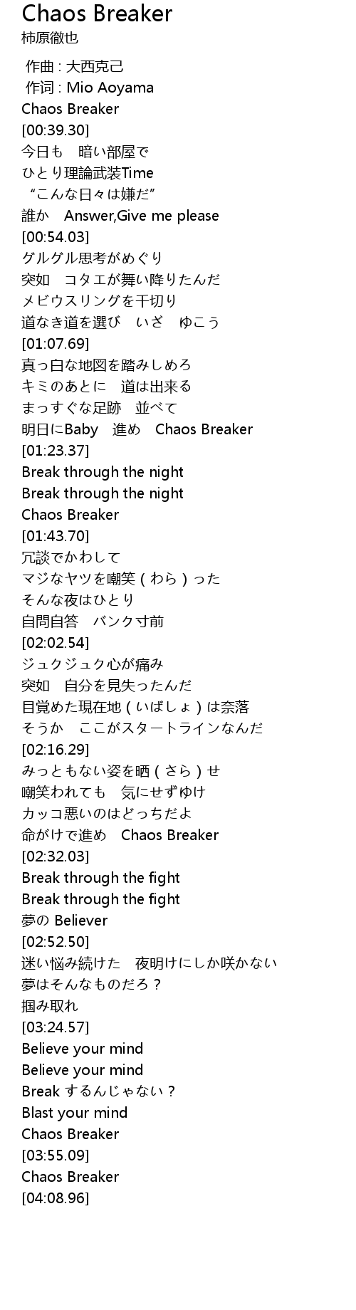 | [02:27.62] | 命がけで進め Chaos Breaker |