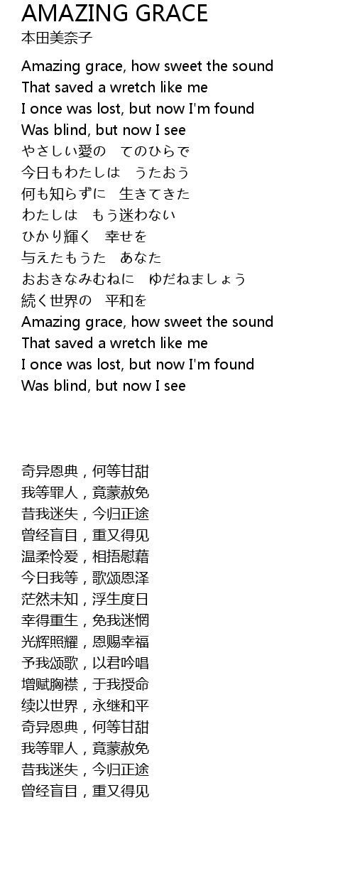 | [02:49.000] | Amazing grace, how sweet the sound |