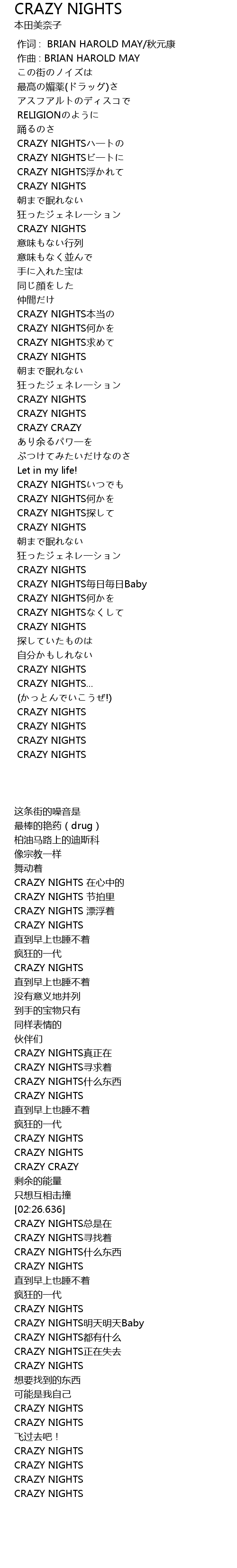 | [02:48.734] | CRAZY NIGHTS mei ri mei ri Baby |