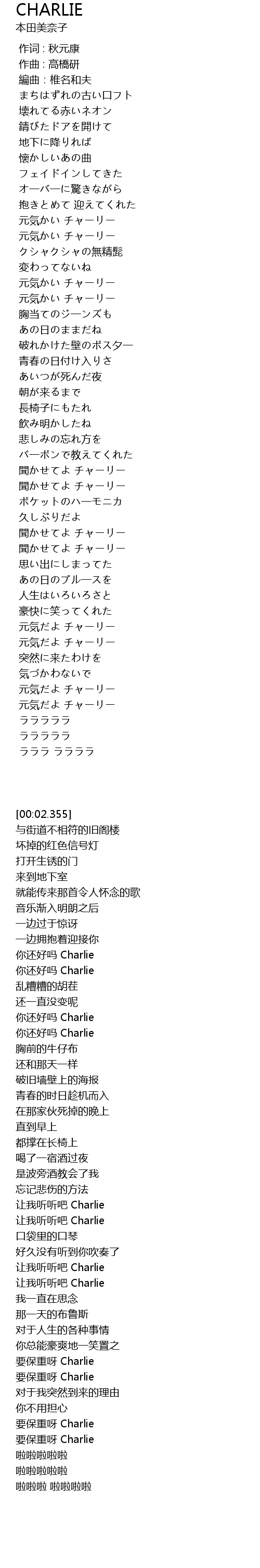聞かせてよ チャーリー |