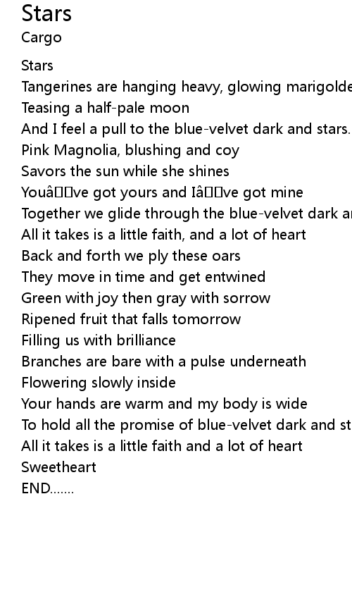 | [02:09.00] | To hold all the promise of bluevelvet dark and stars |