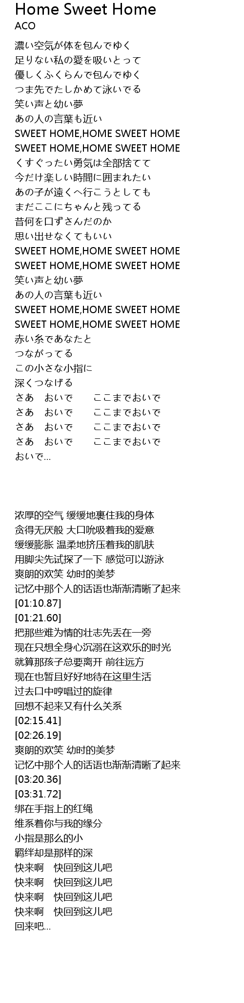 | [03:31.72] | SWEET HOME, HOME SWEET HOME |