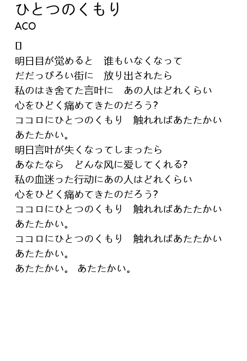 ココロにひとつのくもり 触れればあたたかい |