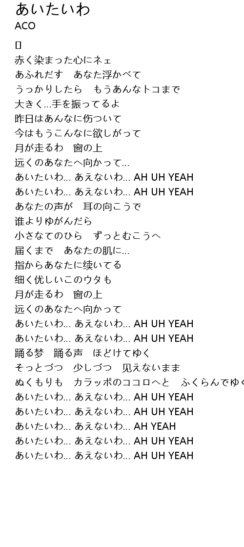| あいたいわ… あえないわ… AH UH YEAH | |