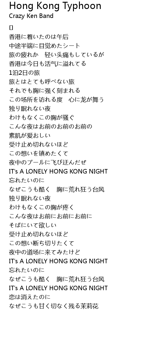 | Song | Hong Kong Typhoon |