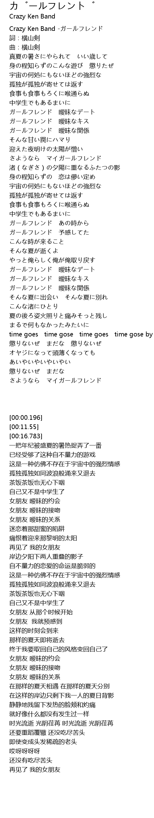| [00:00.196] | Crazy Ken Band -ガールフレンド |