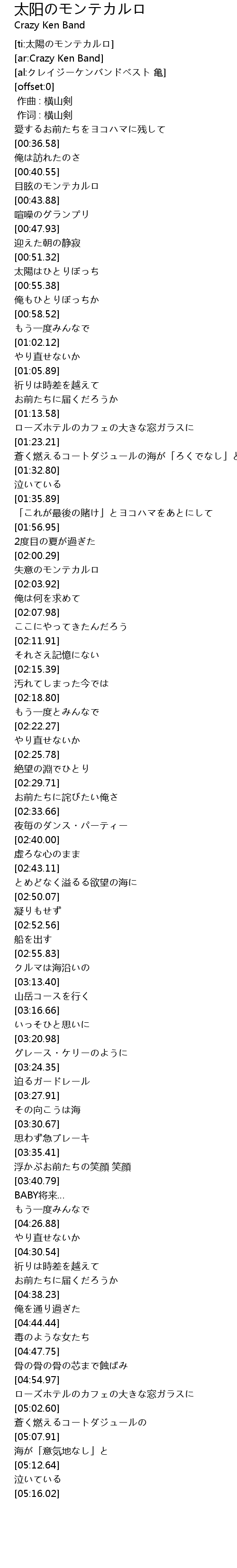| [01:47.89] | 「これが最後の賭け」とヨコハマをあとにして |