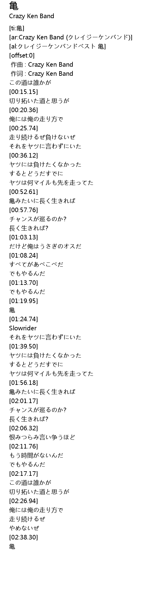 | [00:00.00] | zuo qu : Crazy Ken Band |